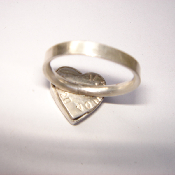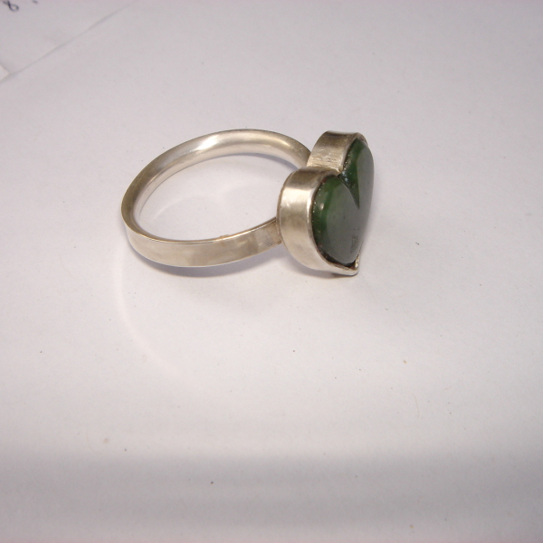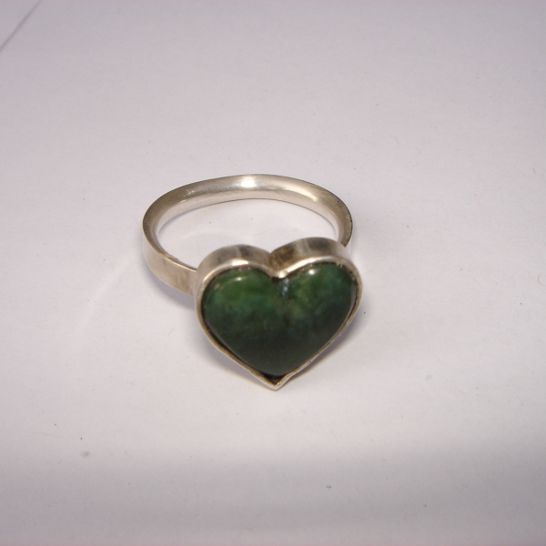 Ein Greenstone aus Neuseeland in Herzform gefasst in 925er Silber als Ring